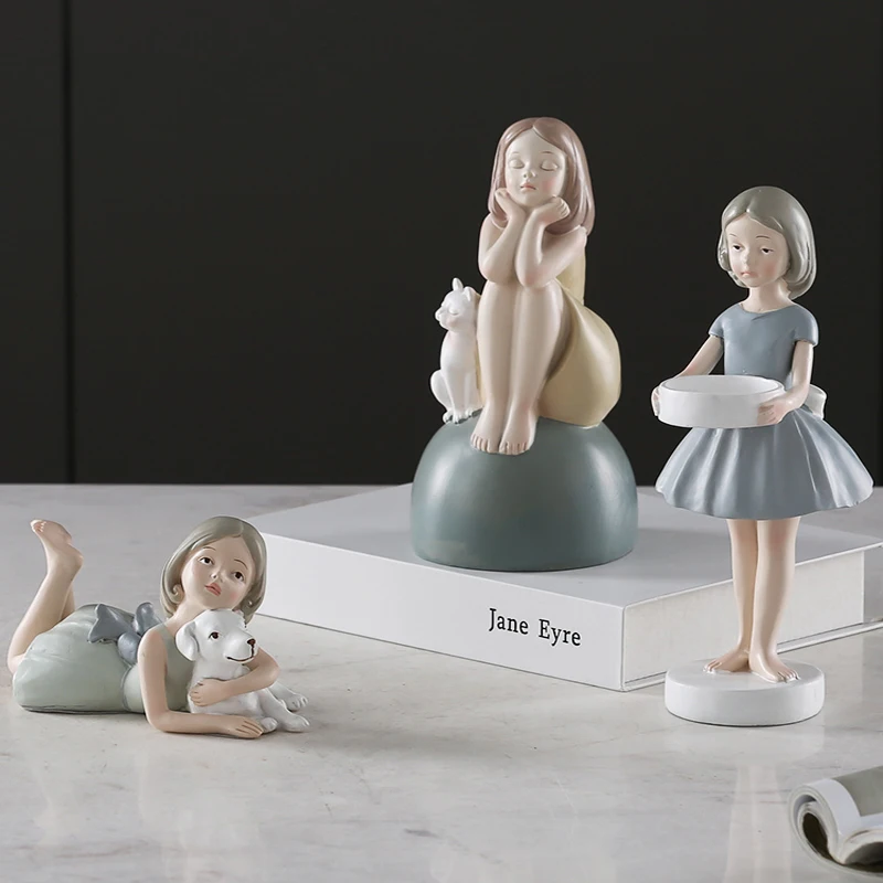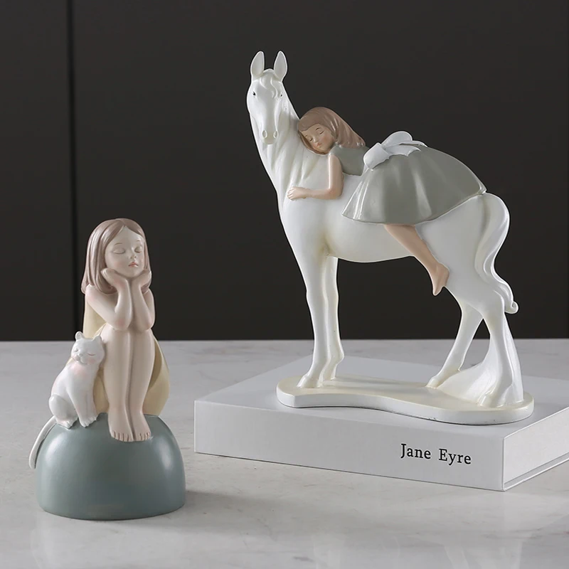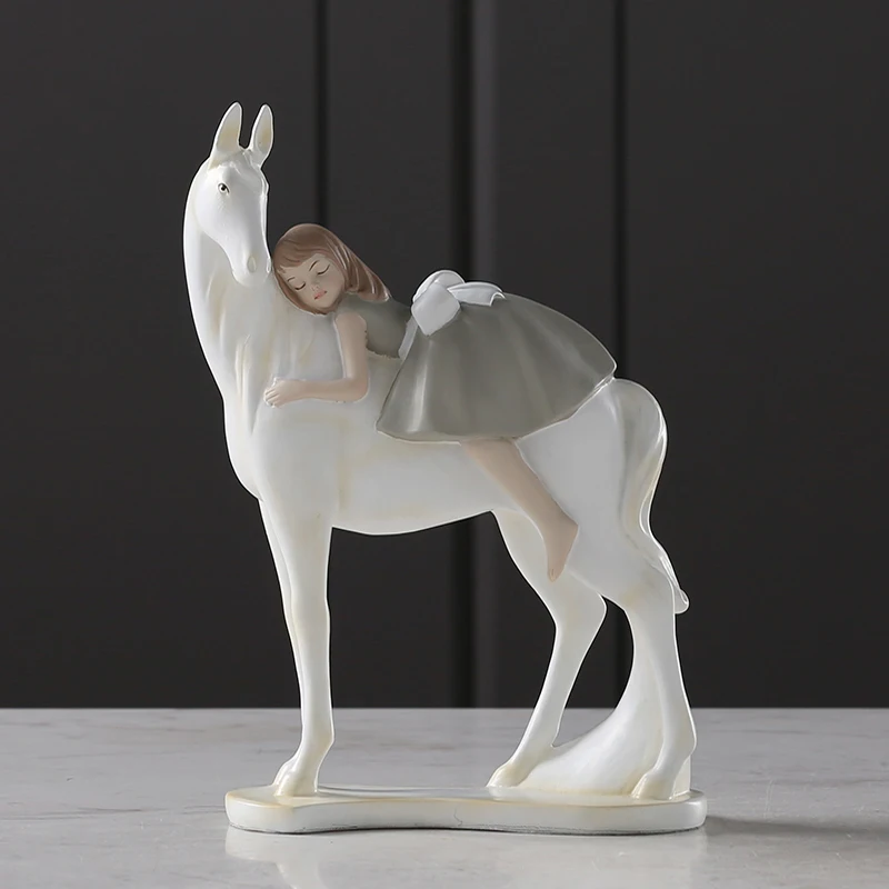 Get Modern Creative Resin Little girl riding a horse miniature figurines tabletop crafts Lovely girl gi